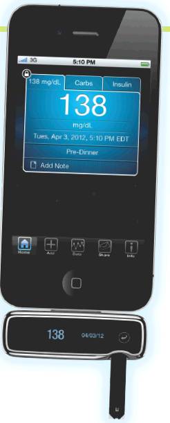 Designed to plug into the power port on an iPhone or iPod Touch, the iBGStar is a bit more than 2 inches long and less than an inch high. It is the first iPhone-enabled glucose meter to receive FDA approval and is sold in Apple’s retail stores, along with other health care devices like a WiFi-enabled scale and a blood pressure monitor dock. Apple stores seem to sprinkle anything they sell with pixie dust; the very fact that iBGStar is sold there automatically makes it cool. As one PWD put it, “Seeing it in the Apple Store made me think that diabetes is mainstream for the first time.” iBGStar can be used alone or plugged into an iPhone or iPod Touch. Either way, it syncs with the free iBGStar Diabetes Manager App and allows users to view their data, including test results — carbohydrate intake, and insulin doses — over time. Scorecards show individual blood glucose results and are color coded so that high and low blood glucose results can be more easily identified. Trend charts give users customizable views of their results and allow them to see whether values are within a defined target range. Anything the App compiles can be sent to someone as an email. Perhaps it’s worth noting that more than half of all physicians in the U.S. own an iPad. It’s fair to assume that where there’s an iPad, there’s probably an iPhone, so a lot of the advice-givers are ready to be linked.