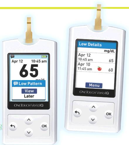 Kamal Bhandal, a Lifescan spokesperson for the product, explains the benefits as follows: “OneTouch VerioIQ is a fantastic meter for all people with diabetes — it makes testing simple. Many people with diabetes manage in the moment, correcting high or low blood glucose based on a single meter reading. Looking at your glucose patterns is a much better way, because it allows you to match your numbers to your actions.”