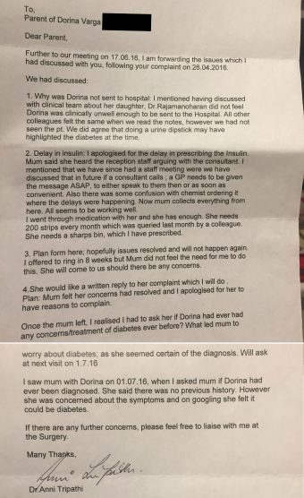 After this incident, our diabetes consultant called the doctor. The doctor’s receptionist argued with the consultant and even went so far as to question the necessity of insulin for my daughter. The consultant threatened that if the doctor wouldn’t prescribe the insulin, an official complaint would be lodged with the government. On the same day, I went to the doctor’s office and lodged a complaint to the manager of the practice.